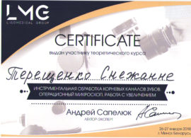2018 год – «Инструментальная обработка корневых каналов зубов. Операционный микроскоп. Работа с увеличением» (Минск);